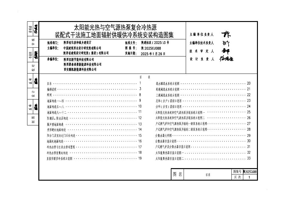 陕2025TJ088 太阳能光热与空气源热泵复合冷热源装配式干法施工地面辐射供暖供冷系统安装构造图集