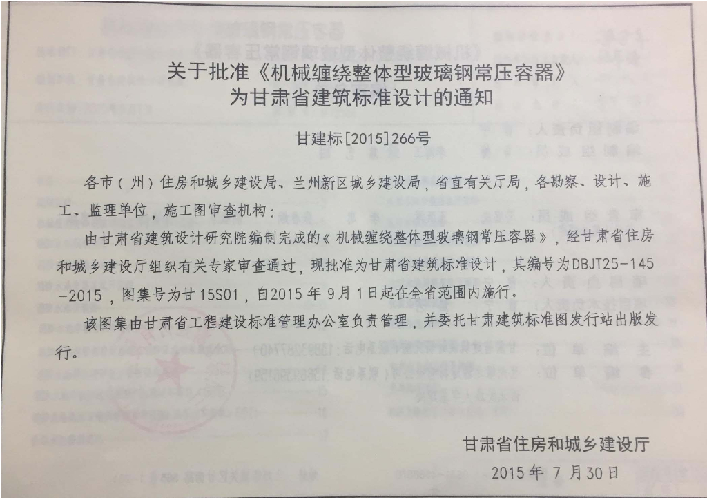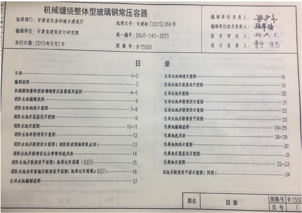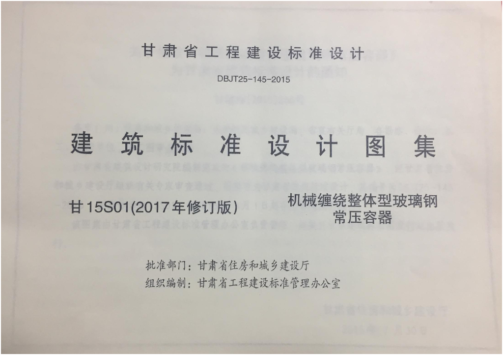 甘15S01 机械缠绕整体型玻璃钢常压容器图集