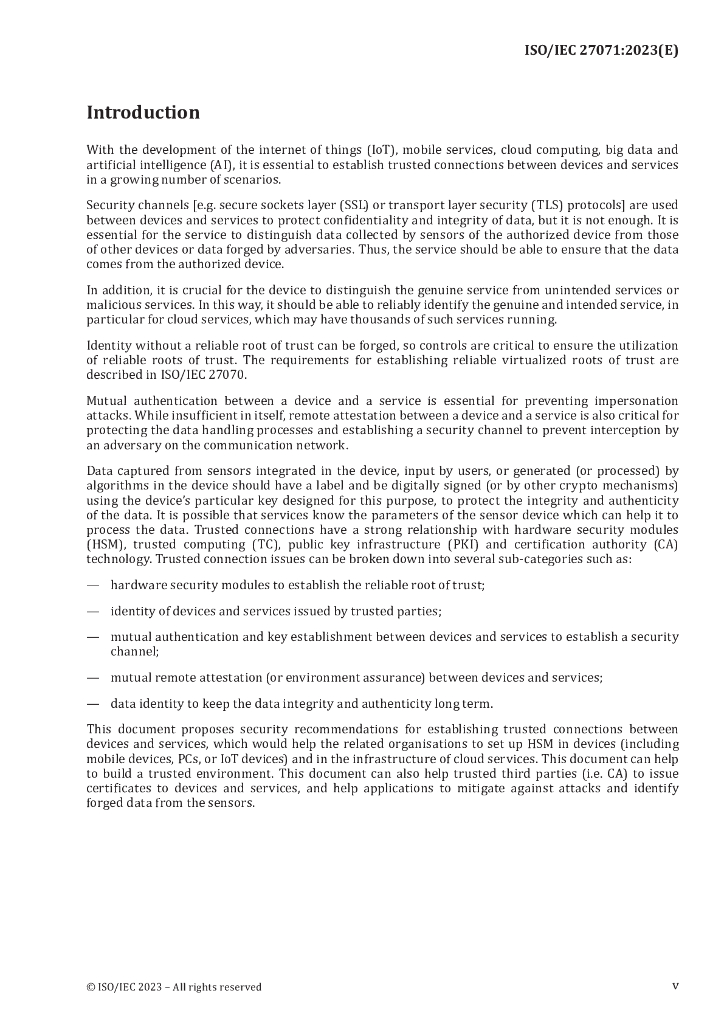 ISO/IEC 27071-2023 Cybersecurity—Security recommendations for establishing trusted connections between devices and services