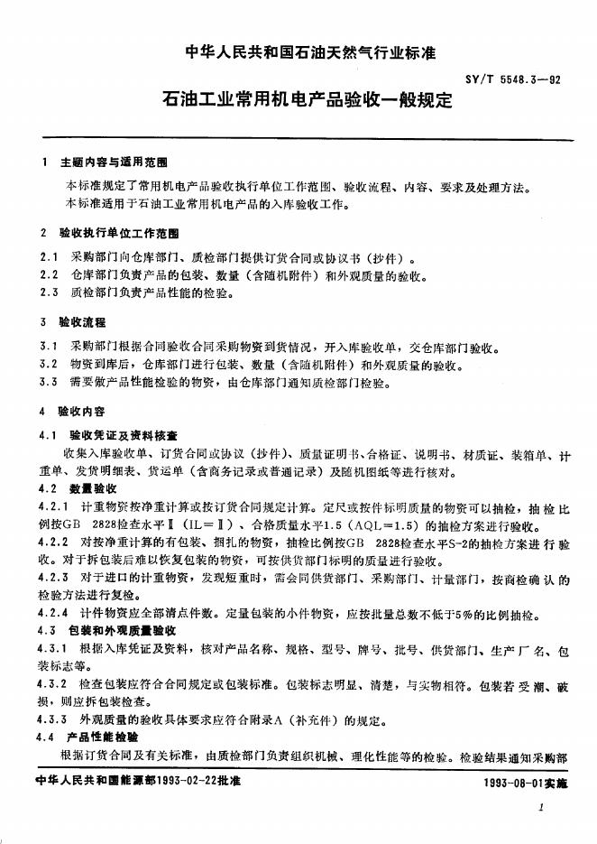 SY/T 5548.3-1992 石油工业常用机电产品验收一般规定