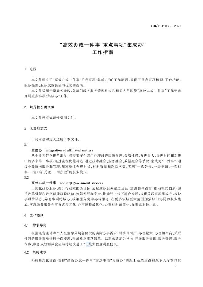 GB/T 45836-2025 “高效办成一件事”重点事项“集成办”工作指南