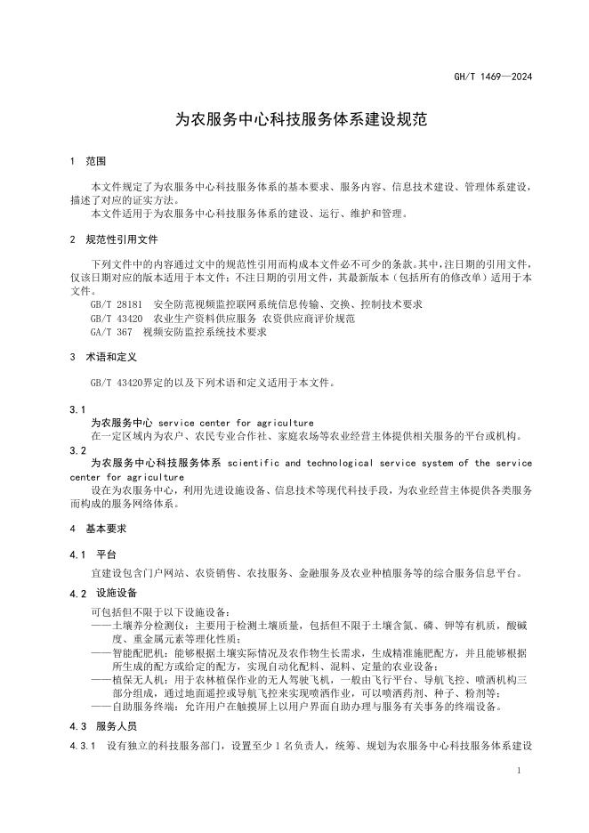 GH/T 1469-2024 为农服务中心科技服务体系建设规范