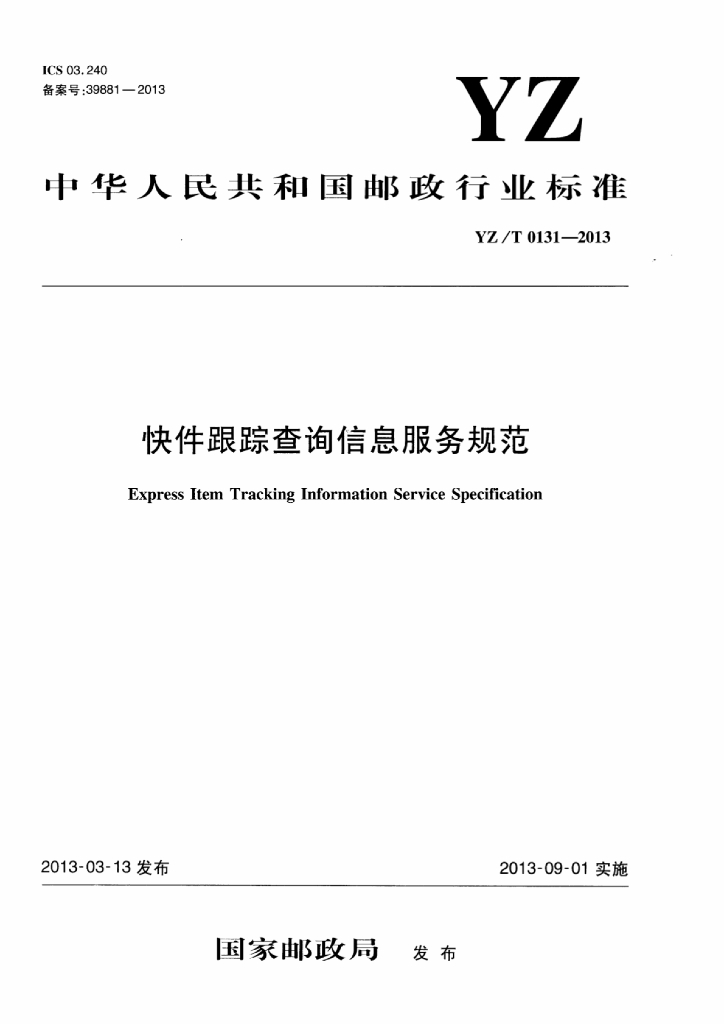 YZ/T 0131-2013 快件跟踪查询信息服务规范