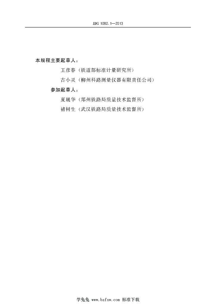 王彦春(铁道部标准计量研究所)、古小灵(柳州科路测量仪器有限责任公司)、夏巍华(郑州铁路局质量技术监督所)、褚树生(武汉铁路局质量技术监督所)