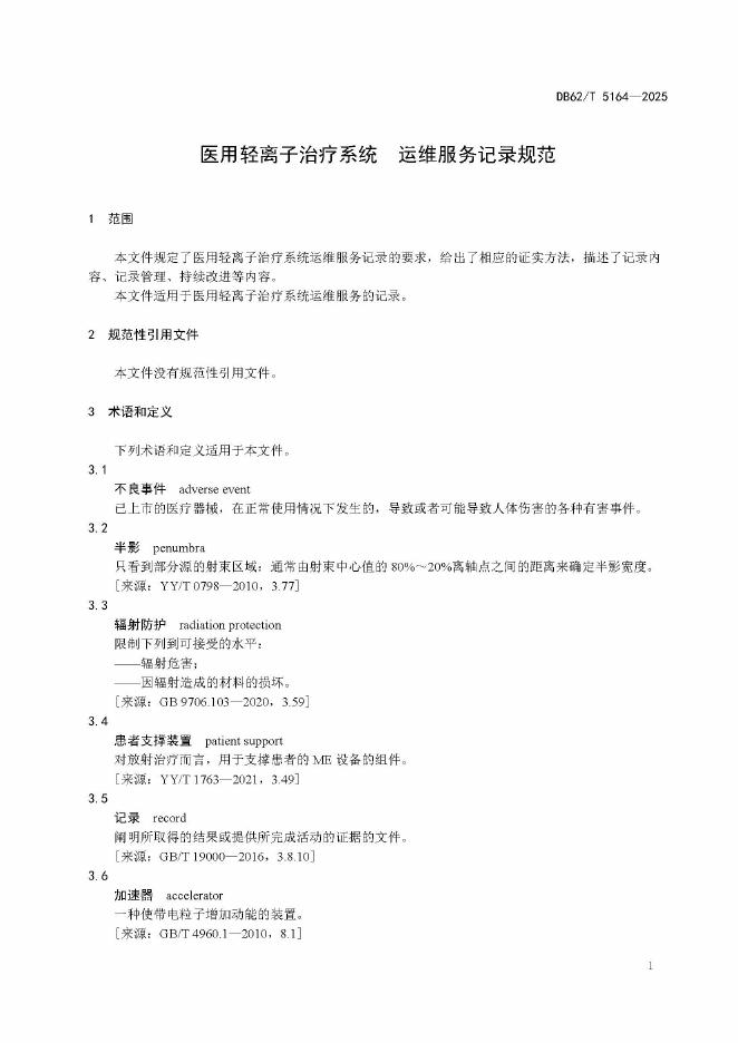 DB62/T 5164-2025 医用轻离子治疗系统 运维服务记录规范