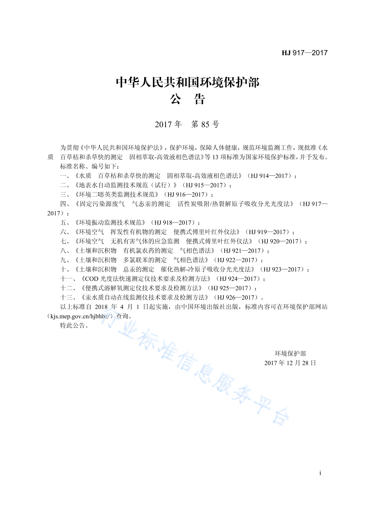 HJ 917-2017 固定污染源废气 气态汞的测定 活性碳吸附/热裂解原子吸收分光光度法