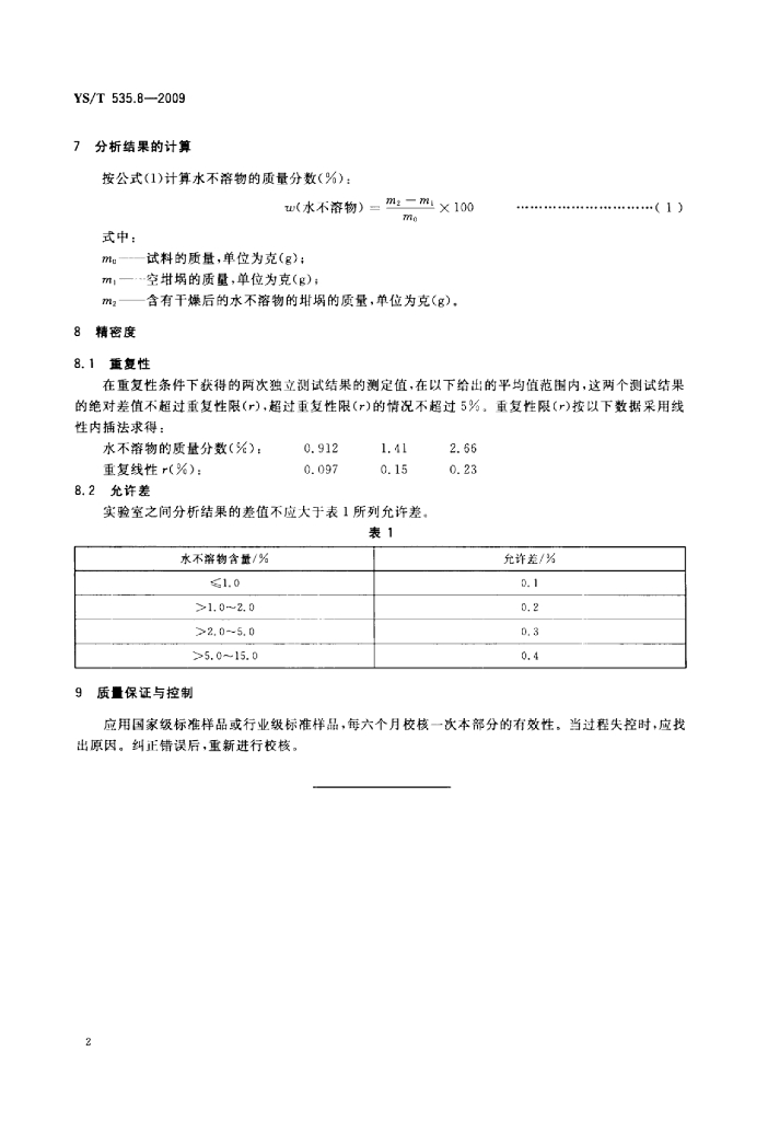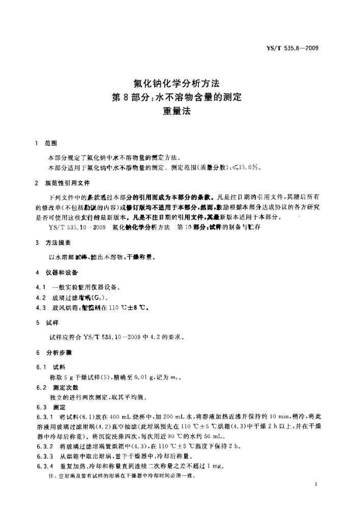 YS/T 535.8-2009 氟化钠化学分析方法 第8部分:水不溶物含量的测定重量法