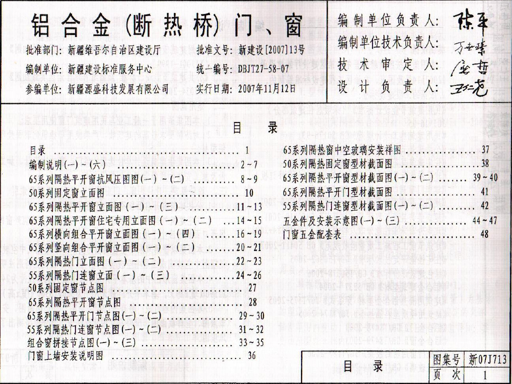 新07J713 铝合金(断热桥)门、窗图集