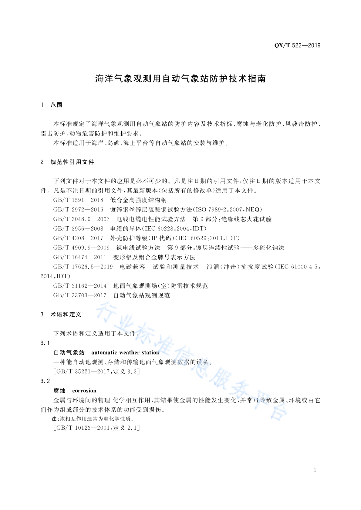 QX/T 522-2019 海洋气象观测用自动气象站防护技术指南