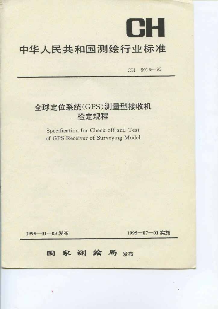 CH 8016-1995 全球定位系统(GPS)测量型接收机检定规程