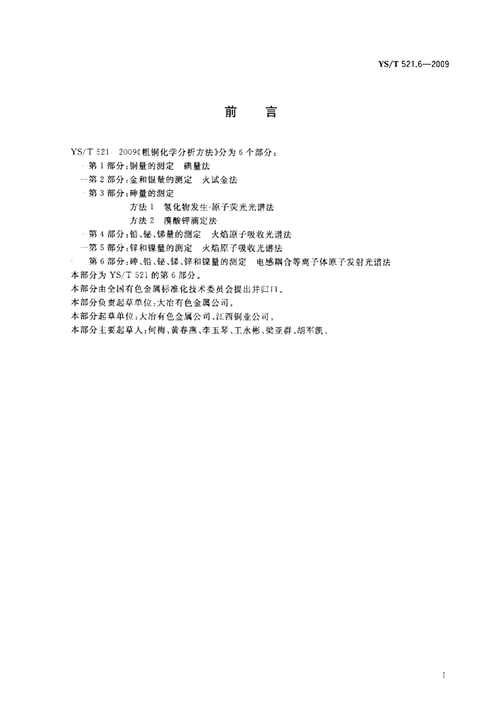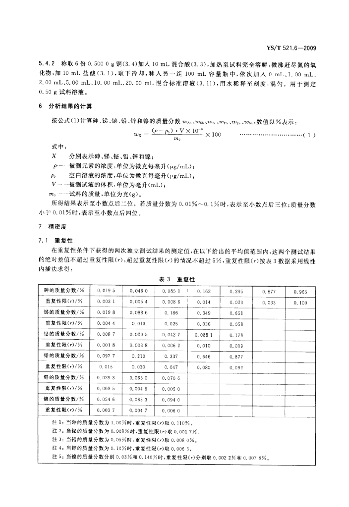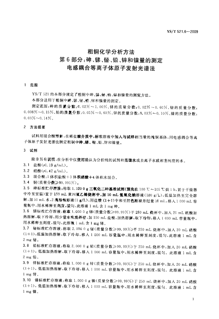 YS/T 521.6-2009 粗铜化学分析方法 第6部分:砷、锑、铋、铅、锌和镍量的测定电感耦合等离子体原子发射光谱法