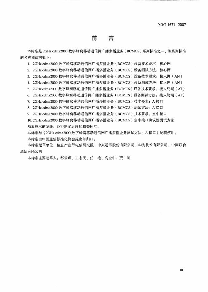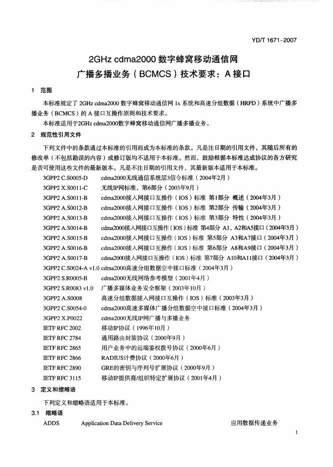YD/T 1671-2007 2GHz cdma2000数字蜂窝移动通信网广播多播业务(BCMCS)技术要求:A接口