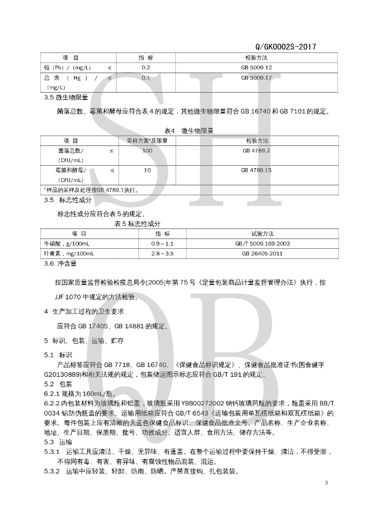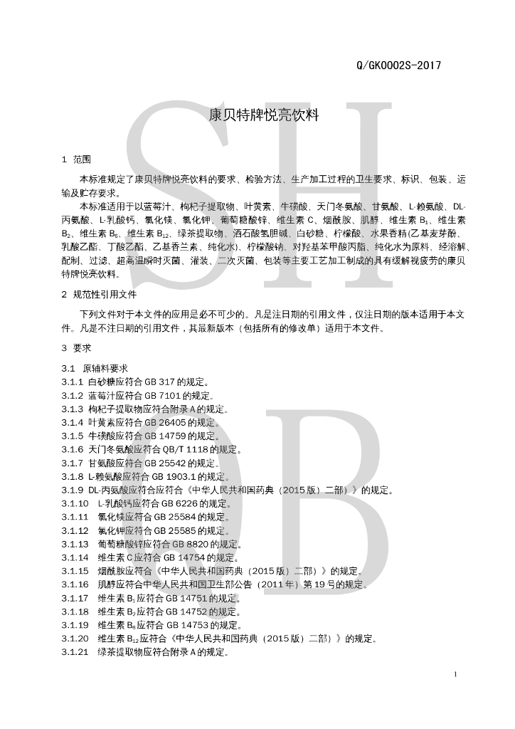 Q/GK 0002S-2017 康贝特牌悦亮饮料