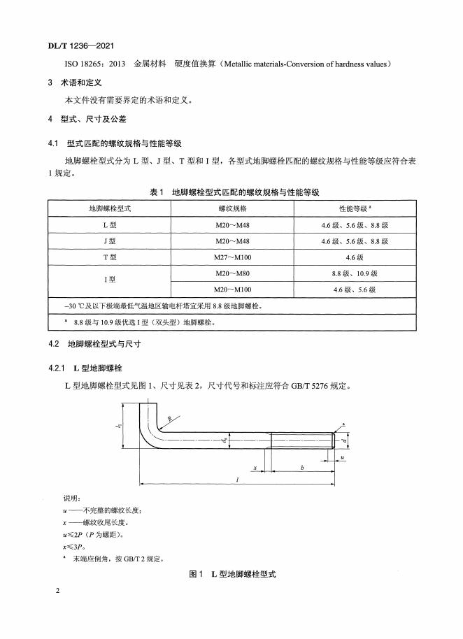 DL/T 1236-2021 输电杆塔用地脚螺栓与螺母