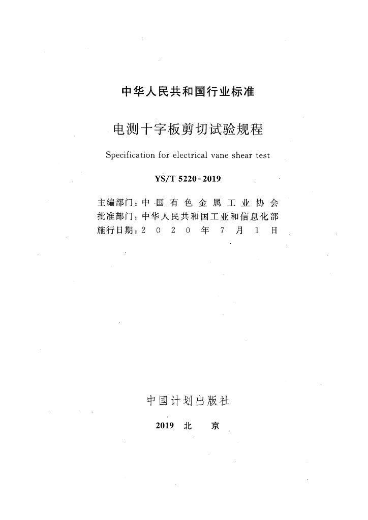 YS/T 5220-2019 电测十字板剪切试验规程