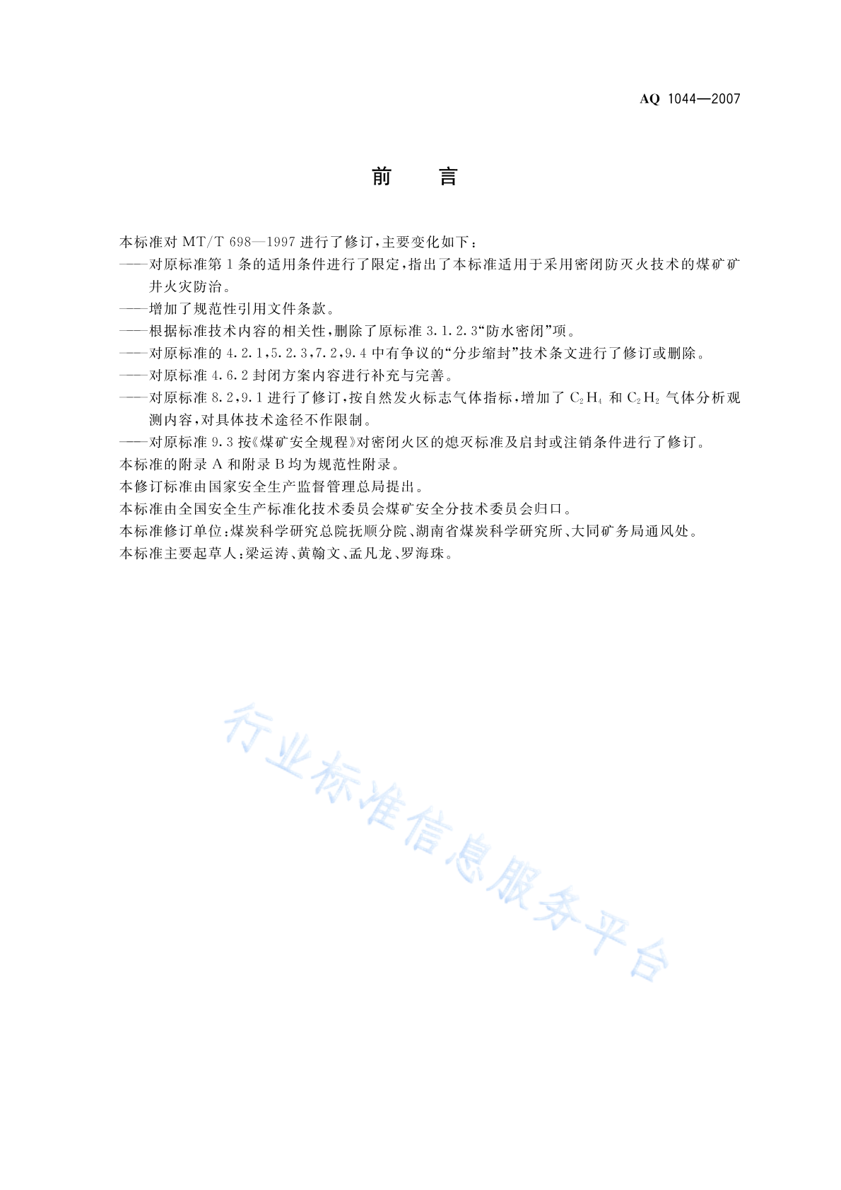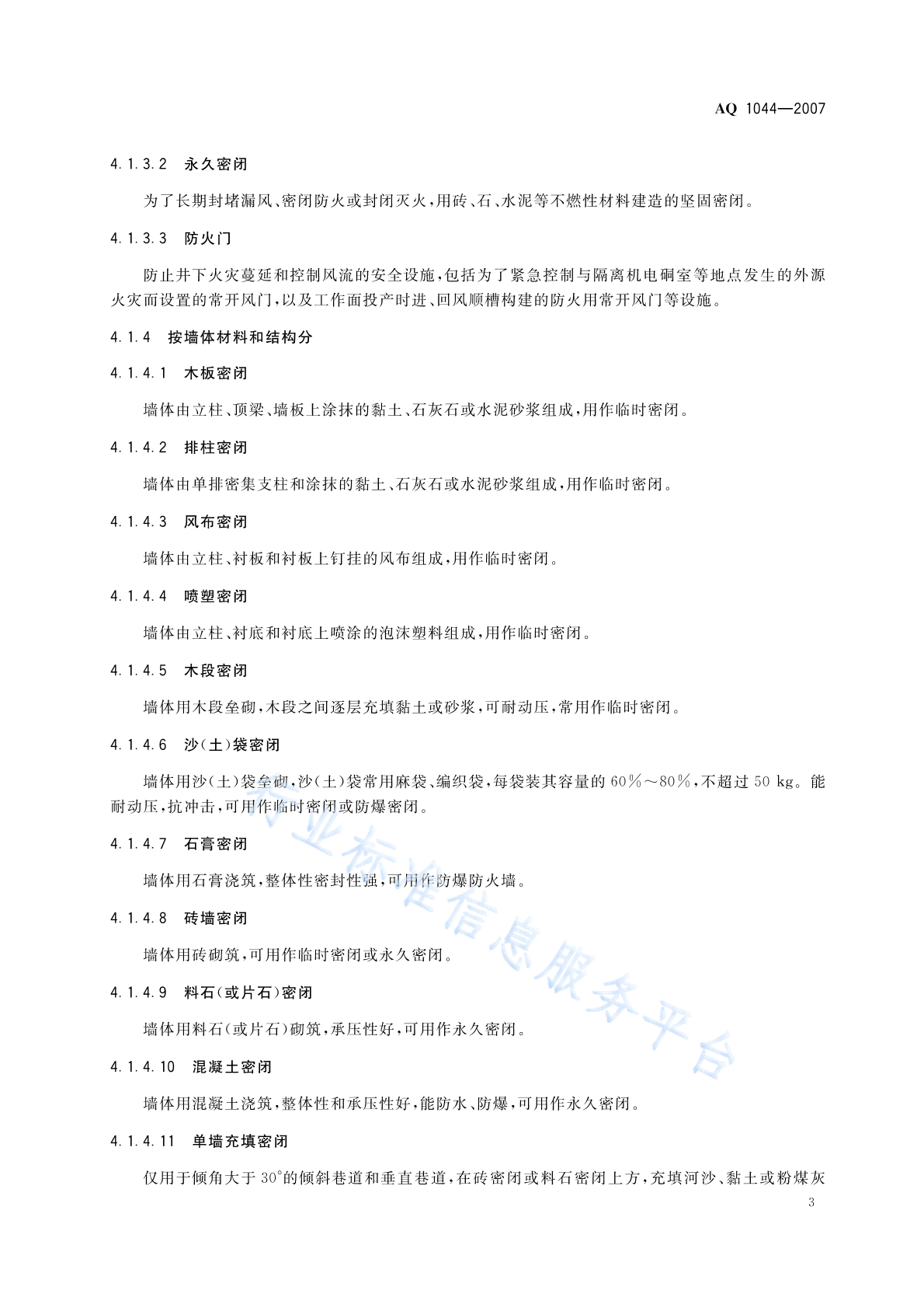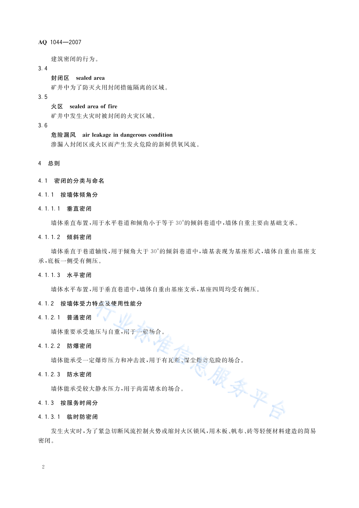AQ 1044-2007 矿井密闭防灭火技术规范