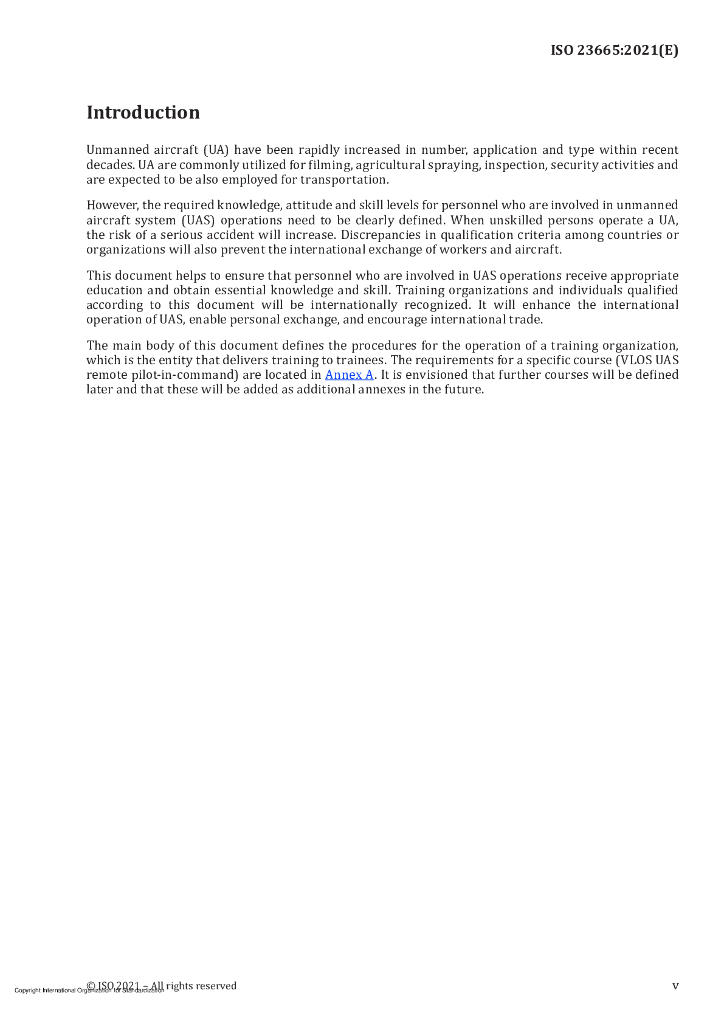 ISO 23665-2021 无人驾驶飞机系统 无人机操作人员的培训