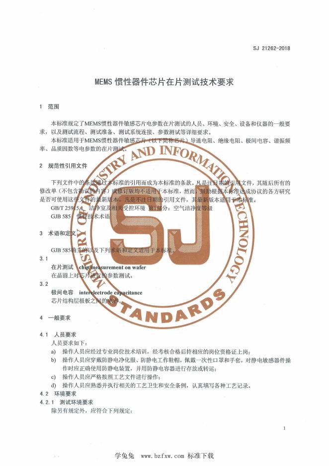 SJ 21262-2018 MEMS 惯性器件芯片在片测试技术要求