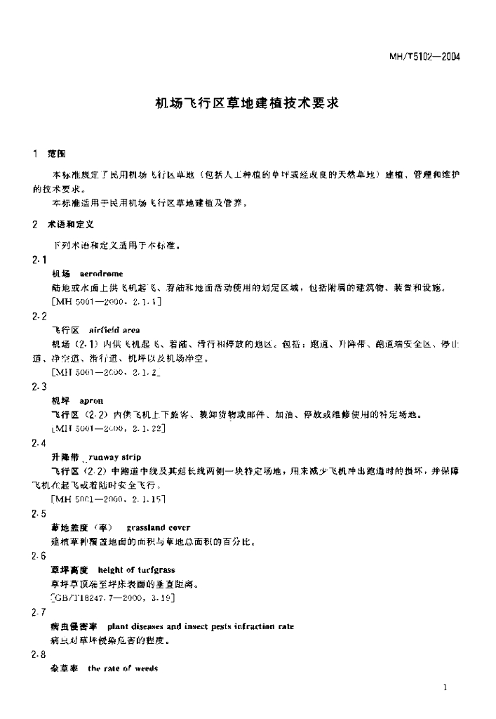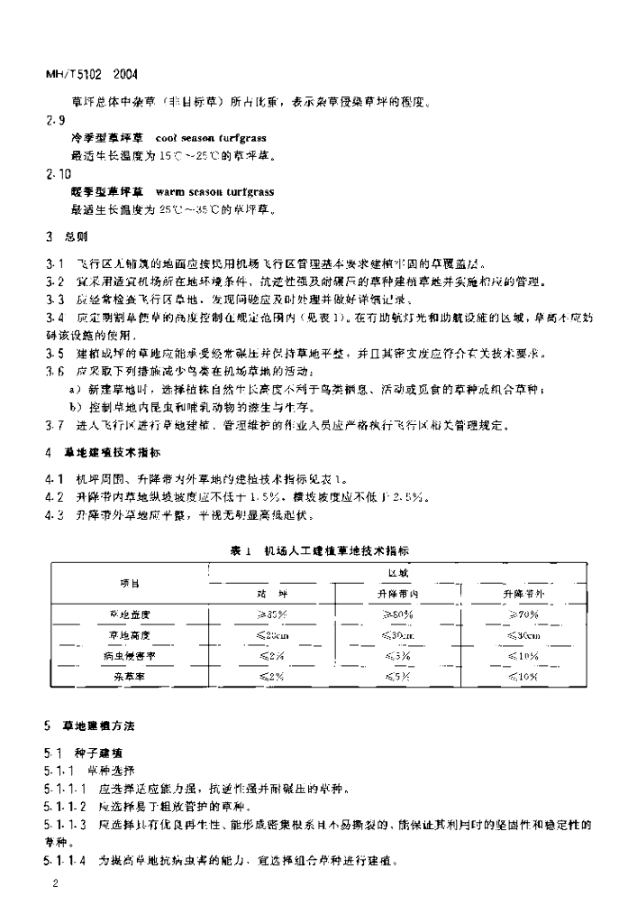 MH/T 5102-2004 机场飞行区草地建植技术要求