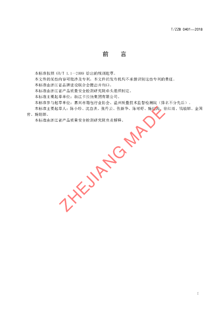 浙江卡拉扬集团有限公司、嘉兴市箱包行业协会、温州质量技术监督检测院
