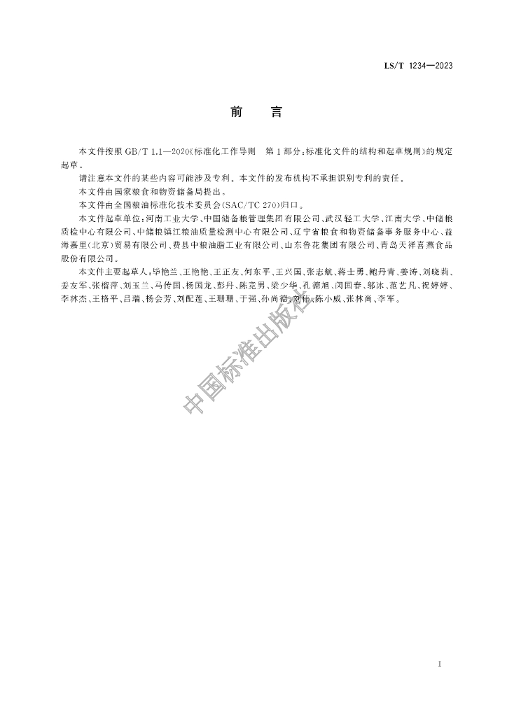河南工业大学、中国储备粮管理集团有限公司、武汉轻工大学、江南大学、中储粮质检中心有限公司、中储粮镇江粮油质量检测中心有限公司、辽宁省粮食和物资储备事务服务中心、益海嘉里(北京)贸易有限公司、费县中粮油脂工业有限公司、山东鲁花集团有限公司、青岛天祥喜燕食品股份有限公司
