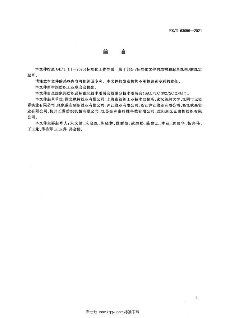 湖北枫树线业有限公司、上海市纺织工业技术监督所、武汉纺织大学、江阴市无染彩实业有限公司、张家港市创新线业有限公司、沪江线业有限公司、浙江沪江线业有限公司、浙江耿基实业有限公司、杭州长翼纺织机械有限公司、江苏金和泰纤维科技有限公司、沈阳新区弘曲棉纺织有限公司