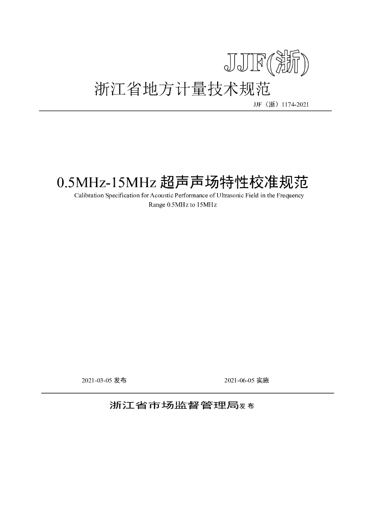 JJF(浙)1174-2021 0.5MHz-15MHz超声声场特性校准规范