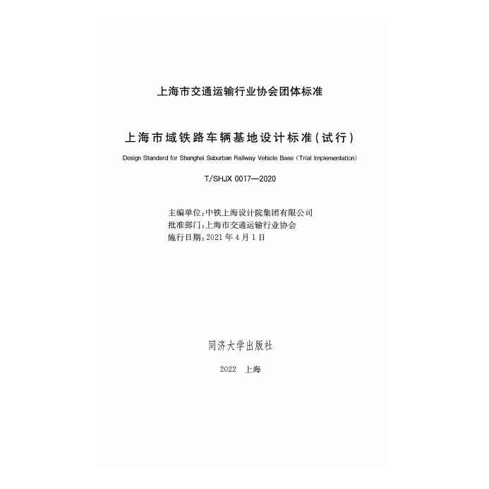 TSHJX 0017-2020 上海市域铁路车辆基地设计标准(试行)