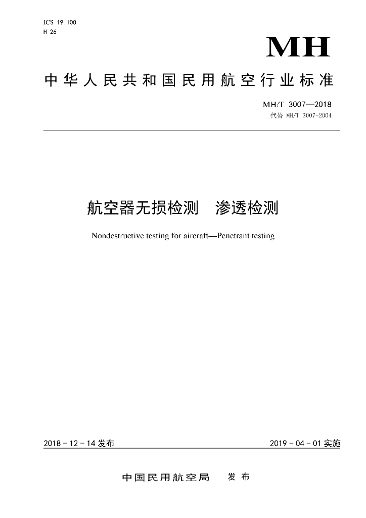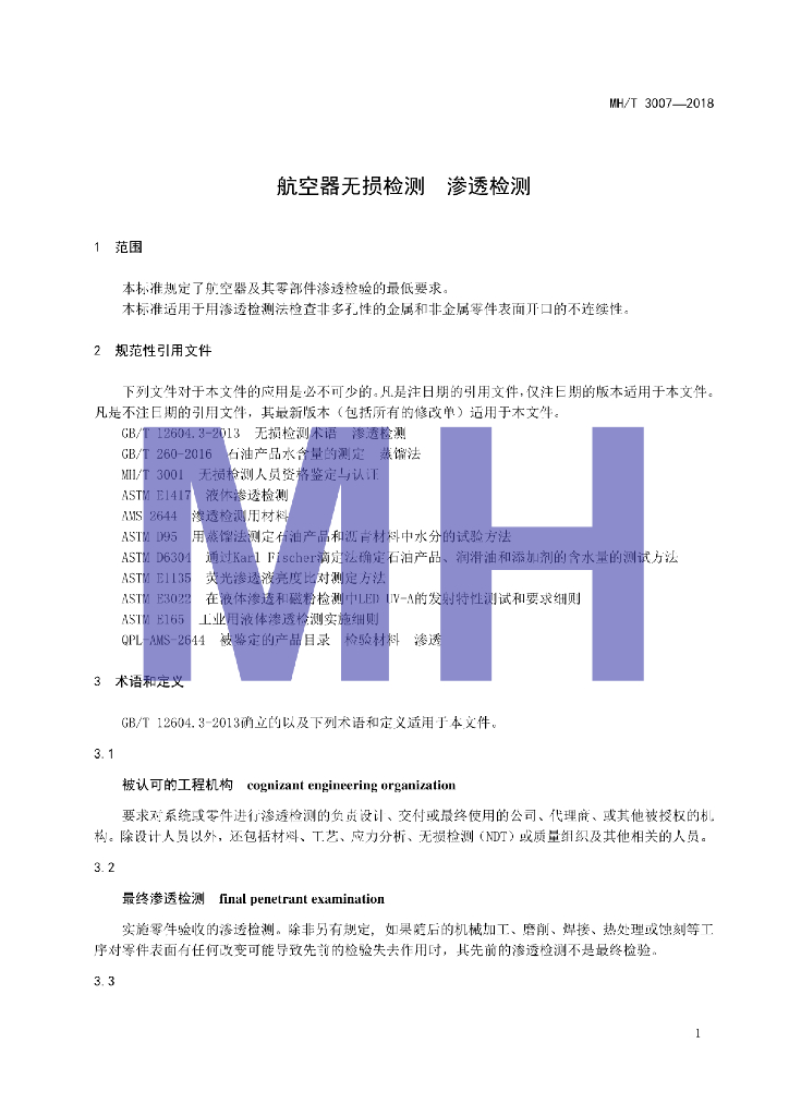 MH/T 3007-2018 航空器无损检测 渗透检测