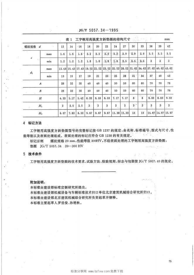JG/T 5057.34-1995 建筑机械与设备 工字钢用高强度方斜垫圈