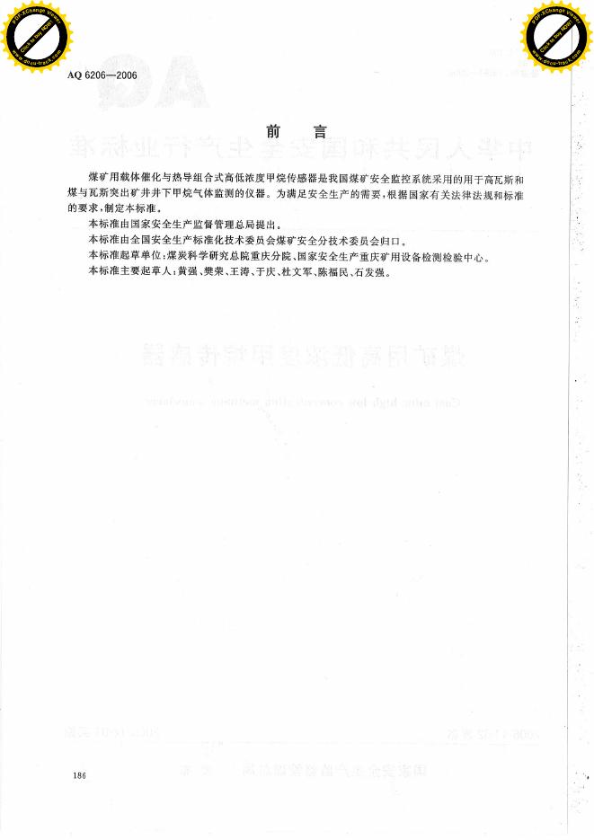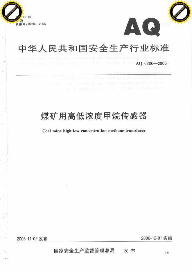 AQ/T 6206-2006 煤矿用高低浓度甲烷传感器