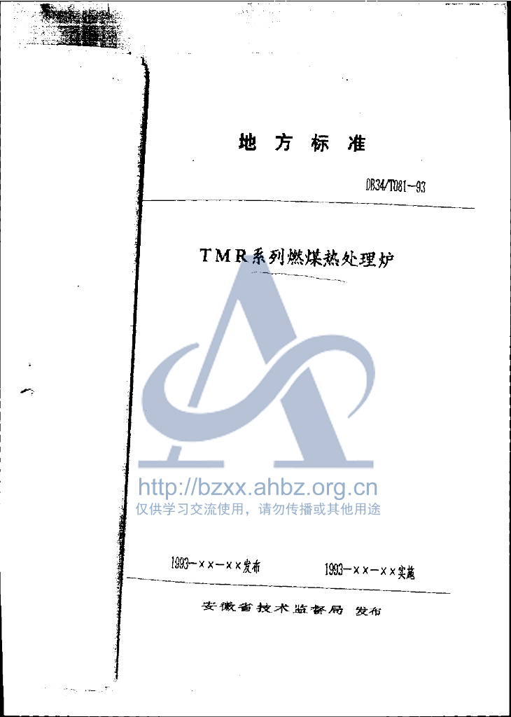 DB34/T 081-1993 TMR系列燃煤热处理炉