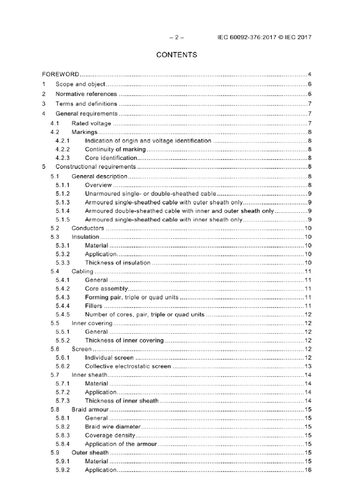 IEC 60092-376:2017 船舶电气设备 第376部分 控制和仪表回路150 250V(300V)电缆
