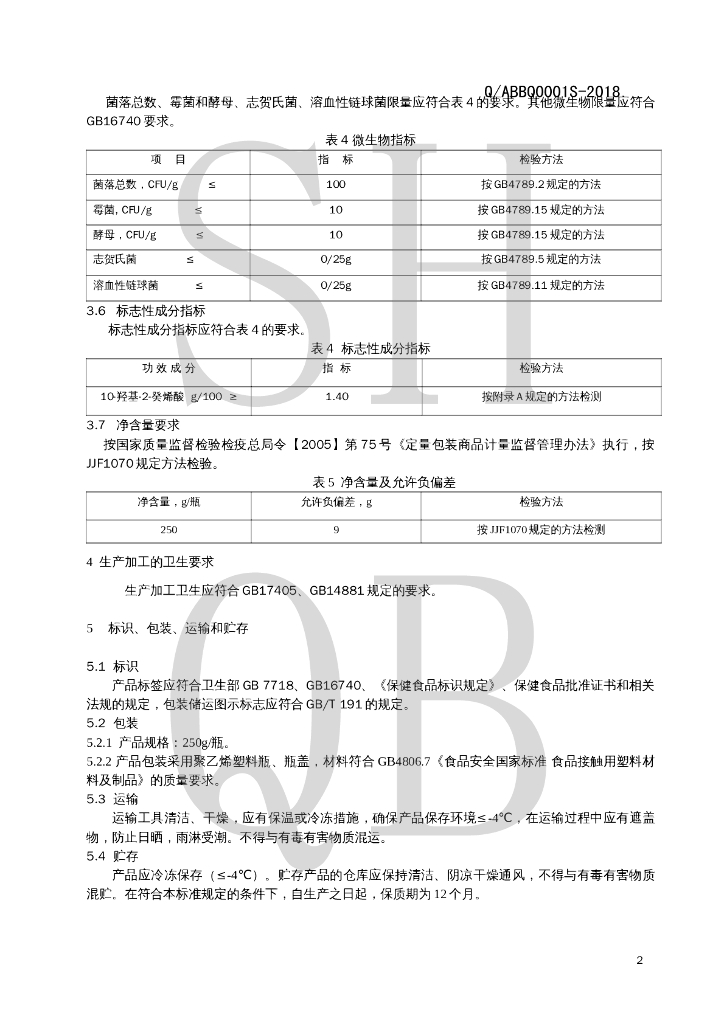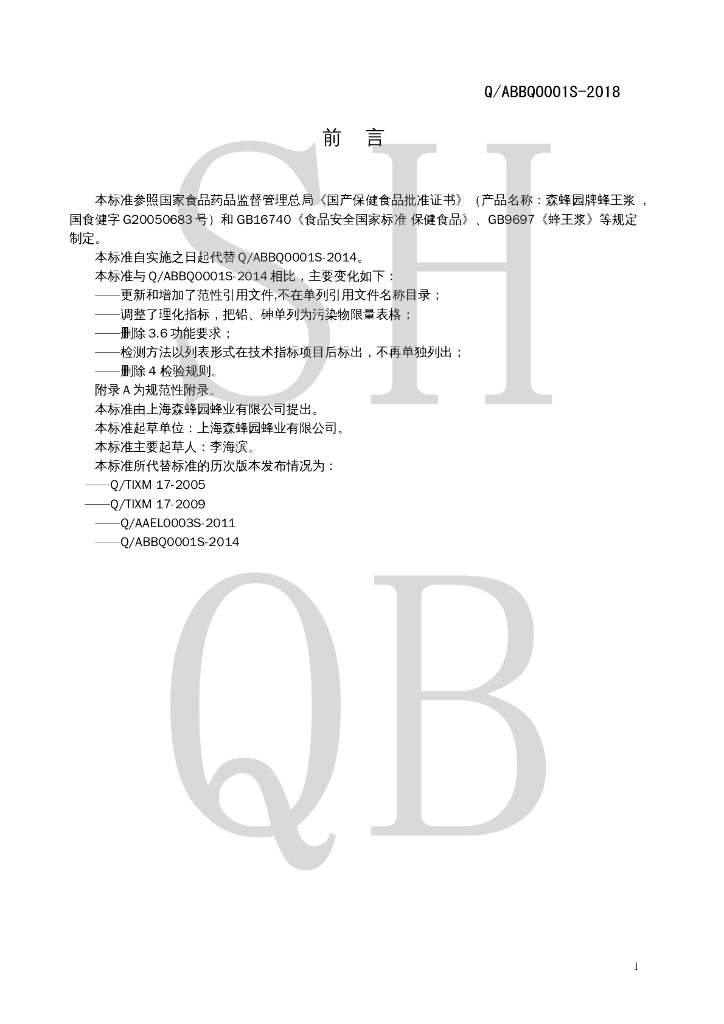 Q/ABBQ 0001S-2018 森蜂园牌蜂王浆