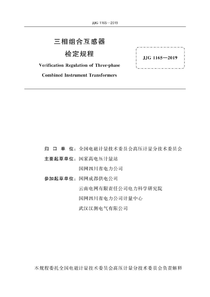 国家高电压计量站、国网四川省电力公司、国网成都供电公司、云南电网有限责任公司电力科学研究院、国网四川省电力公司计量中心、武汉汉测电气有限公司