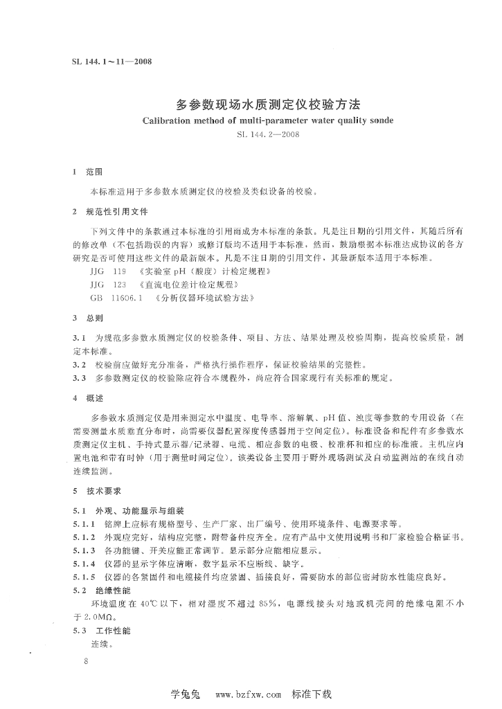 SL 144.2-2008 多参数现场水质测定仪校验方法
