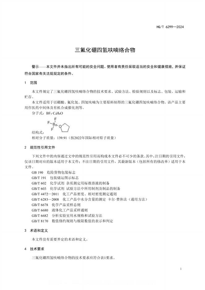 HG/T 6299-2024 三氟化硼四氢呋喃络合物