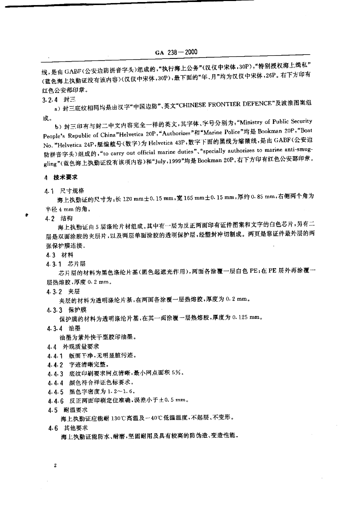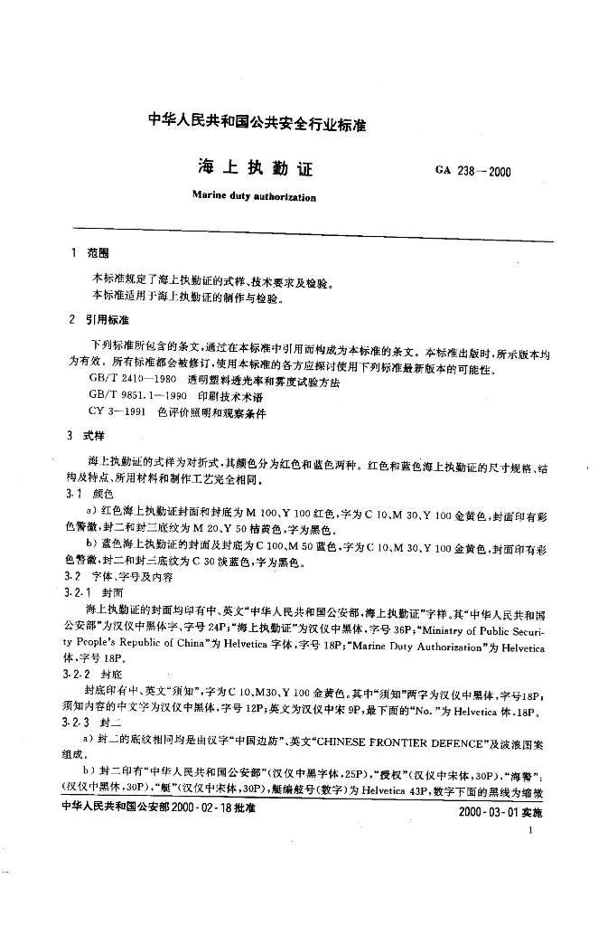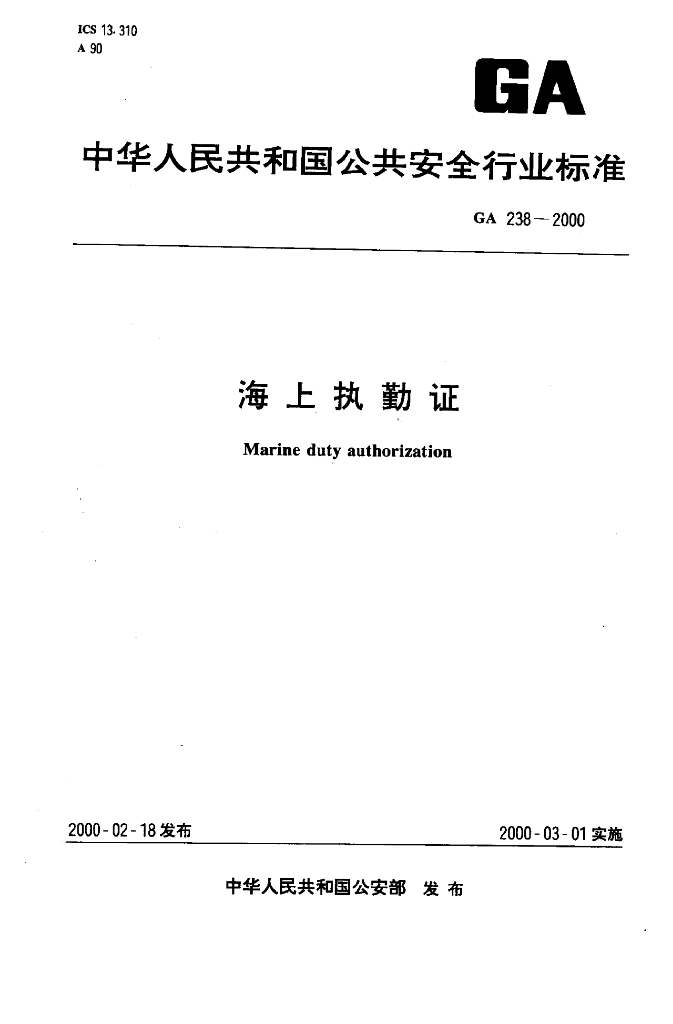 GA 238-2000 海上执勤证