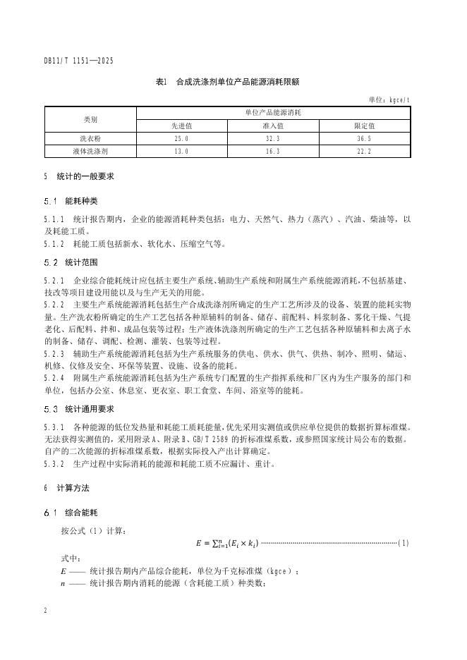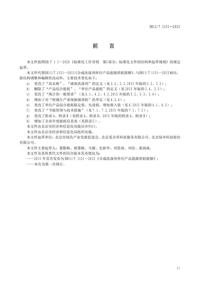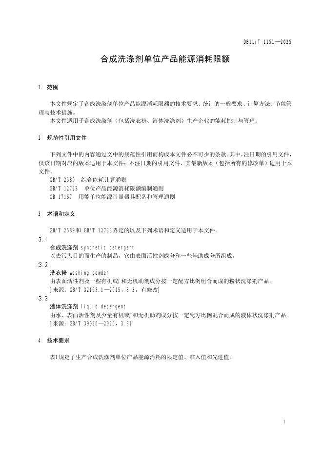 DB11/T 1151-2025 合成洗涤剂单位产品能源消耗限额