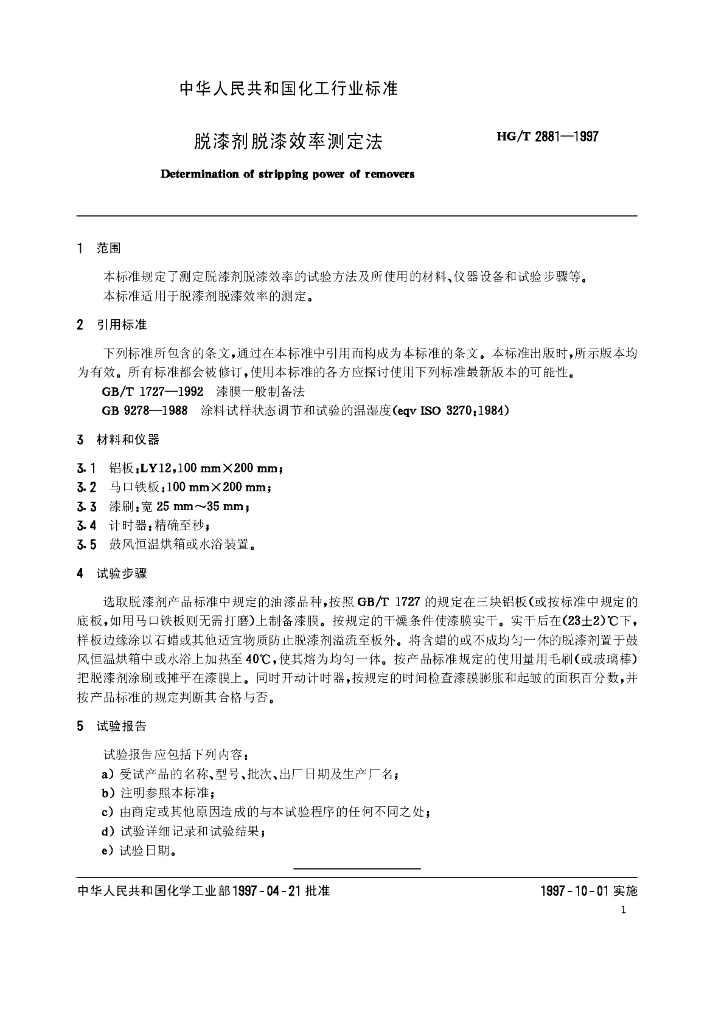 HG/T 2881-1997 脱漆剂脱漆效率测定法