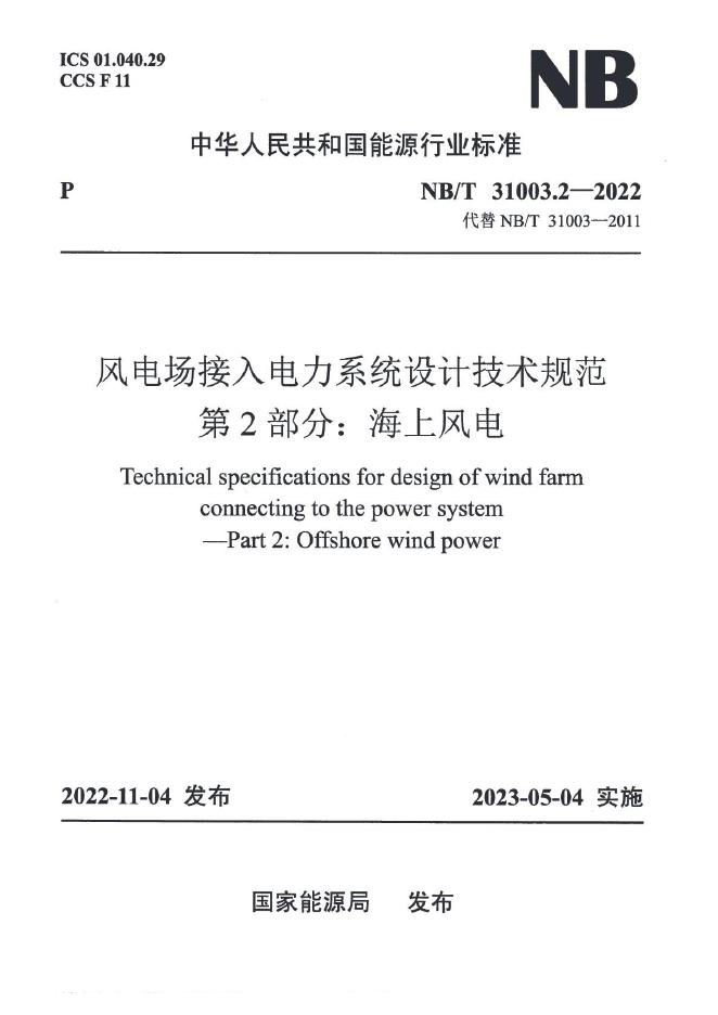 NB/T 31003.2-2022 风电场接入电力系统设计技术规范 第2部分:海上风电(附条文说明)