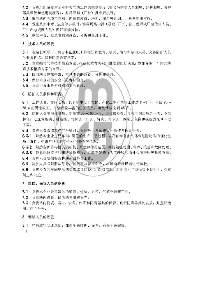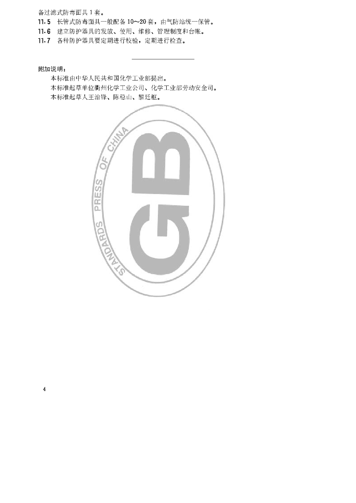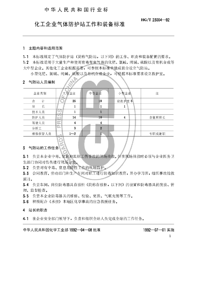 HG/T 23004-1992 化工企业气体防护站工作和装备标准