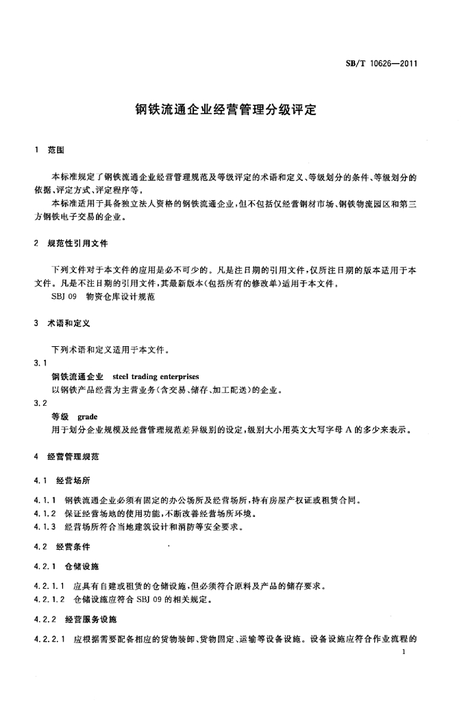 SB/T 10626-2011 钢铁流通企业经营管理分级评定