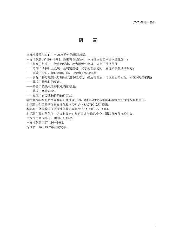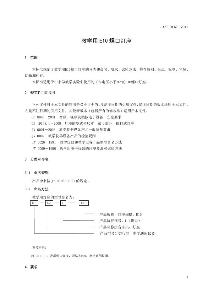 JY/T 0116-2011 教学用E10螺口灯座