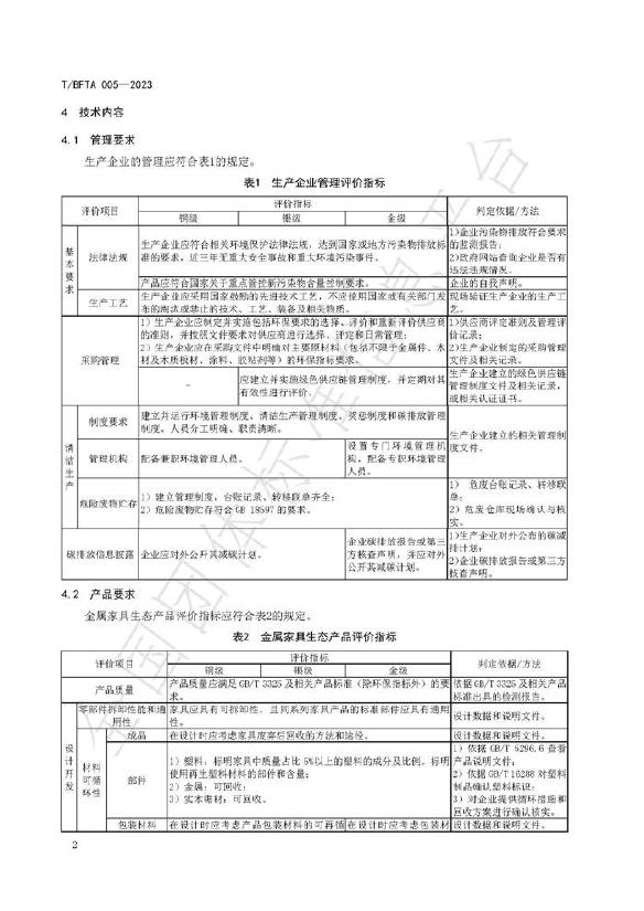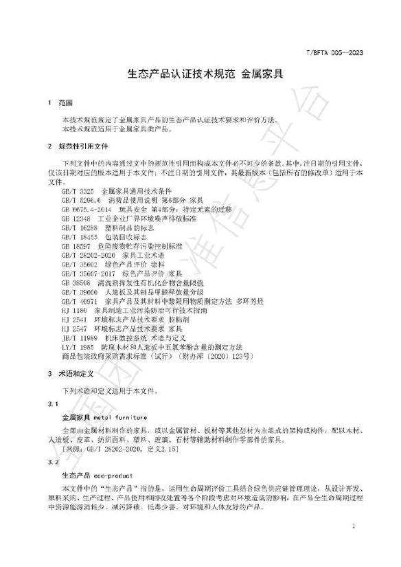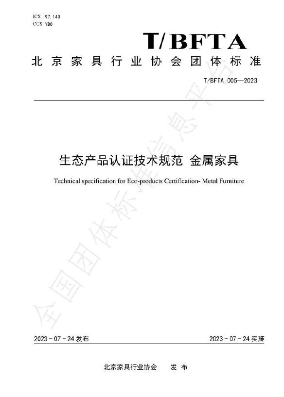 T/BFTA 005-2024 生态产品认证技术规范 金属家具