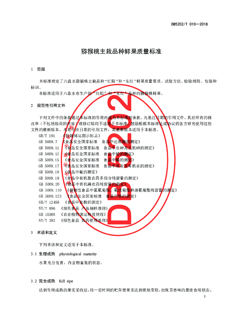 DB5202/T 010-2018 猕猴桃主栽品种鲜果质量标准