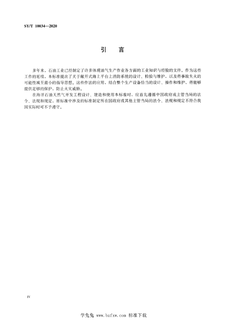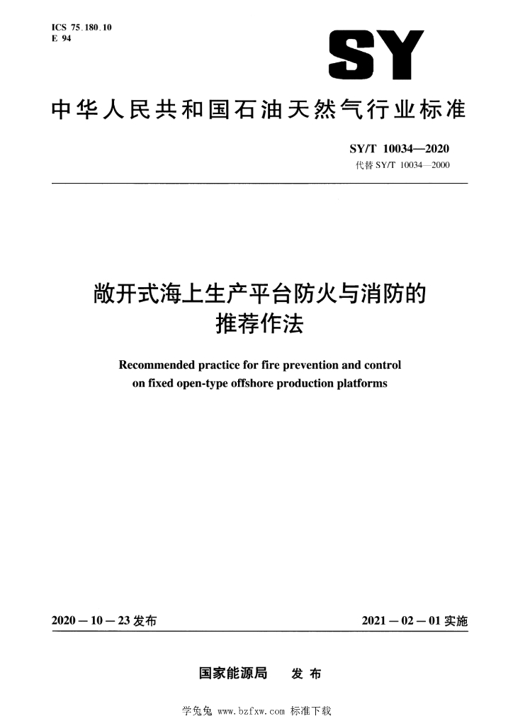 SY/T 10034-2020 敞开式海上生产平台防火与消防的推荐作法
