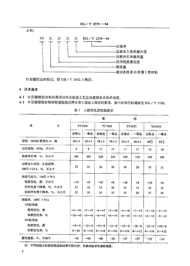 HG/T 2579-1994 O形圈橡胶材料 第1部分 用于普通液压系统
