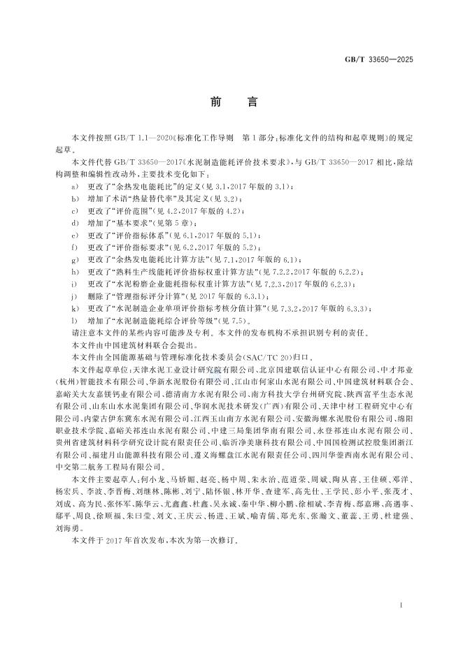 GB/T 33650-2025 水泥制造能耗评价技术要求