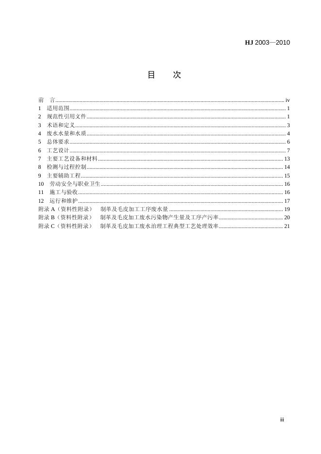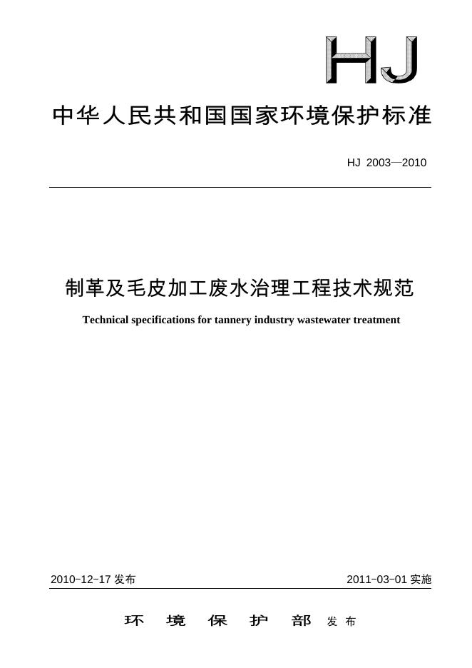 HJ 2003-2010 制革及毛皮加工废水治理工程技术规范